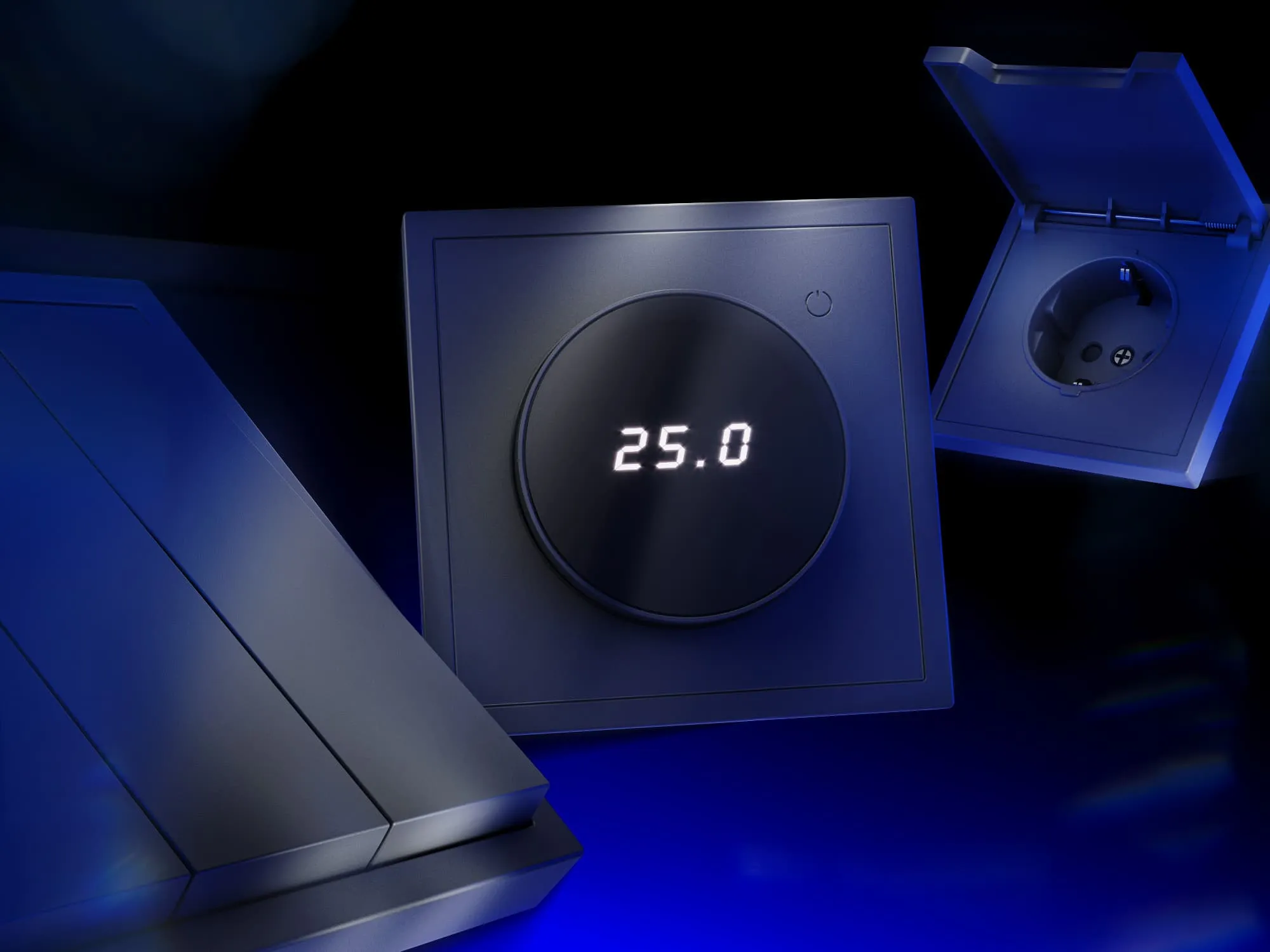 Выключатель полностью совместим с рамками из пластика и закалённого стекла той же серии и гармонично сочетается с другими устройствами VOLTUM S70 — от розеток до терморегуляторов и датчиков движения.
